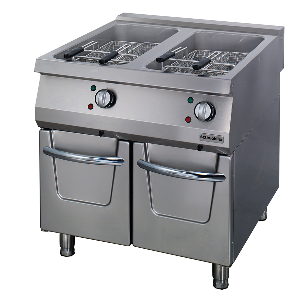 Graças ao seu corpo inteiramente em aço inoxidável, é duradouro e durável. A temperatura do óleo no interior da piscina pode ser regulada até um máximo de 190 °C através do termóstato.